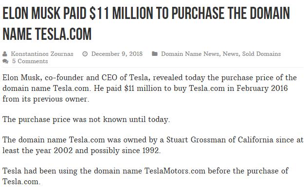 時(shí)隔兩年特斯拉域名價(jià)格終曝光!5個(gè)字符賣(mài)出1100萬(wàn)美元!