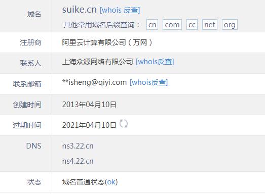 查詢whois顯示,域名suike.cn購買者是上海眾源網絡有限公司,其注冊郵箱是@qiyi.com,上海眾源網絡有限公司法定代表人是龔宇,幕后買家自然也就是愛奇藝。據了解,2019年愛奇藝推出了Vlog產品“愛奇藝隨刻”App鼓勵用戶分享生活和旅行。想來收購suike.cn域名的意圖也很明顯了,就是有意使產品和域名相匹配,域名整體簡短好記有利于產品未來發展宣傳戰略。