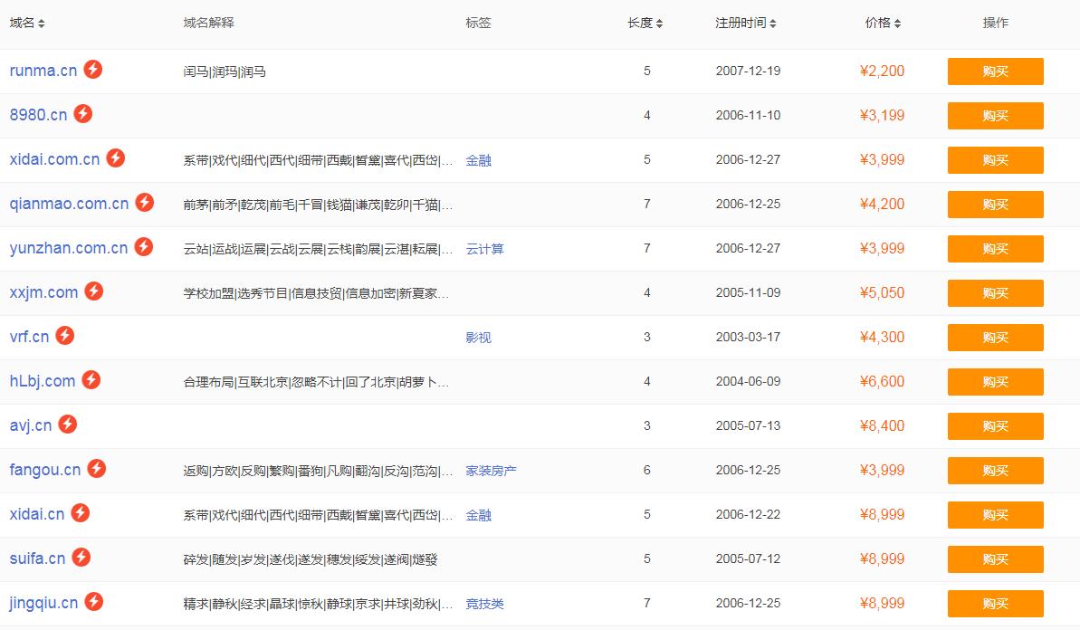 打開首頁就能看見,點擊更多可以查看全部【限時特價域名】推薦,以遠低于原價的價格購買其中的優質域名。為與正常價格銷售域名做區分,每個【限時特價域名】都會在右側帶有閃電的標志,鼠標移上去會有特價剩余時間提示,限時特價時間為1-7天不等,時間一到立即恢復原價,歡迎大家關注。