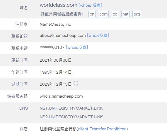 查詢whois發(fā)現(xiàn),域名worldclass.com注冊于1993年12月,距今已有28年歷史了。作為單詞組合域名worldclass.com有“世界級、世界一流的”的含義,域名由兩個知名、常用詞的組合。前面的單詞是world“世界、地球”,后面的單詞是class“班級、等級、社會階級”,拆分后很簡單能看出來該域名的優(yōu)勢,因為用戶很容易就能記住它。同時,與之相關(guān)的后綴全部都已經(jīng)注冊,并且時間最晚是worldclass.cc在2019年注冊,最早的可以追溯到1998年的worldclass.net,此外.cn在2012年注冊,.com.cn在2006年注冊。而且,除了域名之外還有相關(guān)的雜志、會議、高精尖科技都會以“worldclass”來定義。